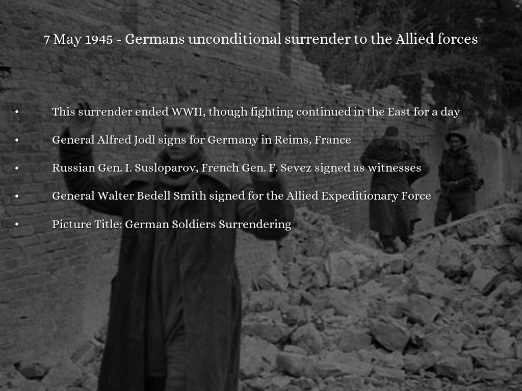 7 May 1945 - Germans unconditional surrender to the Allied forces