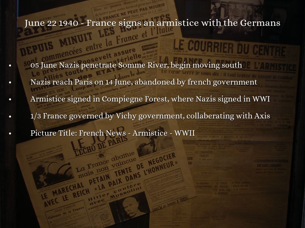 June 22 1940 - France signs an armistice with the Germans