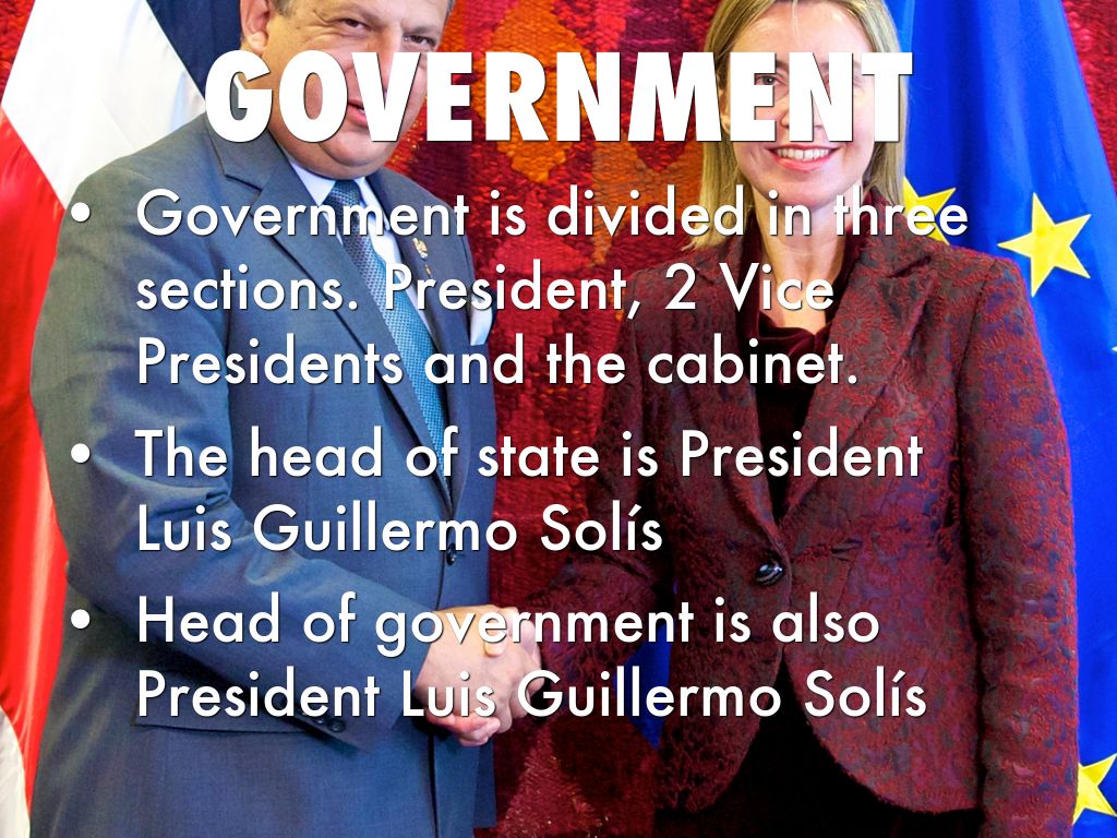 Government is divided in three sections. President, 2 Vice Presidents and the cabinet.