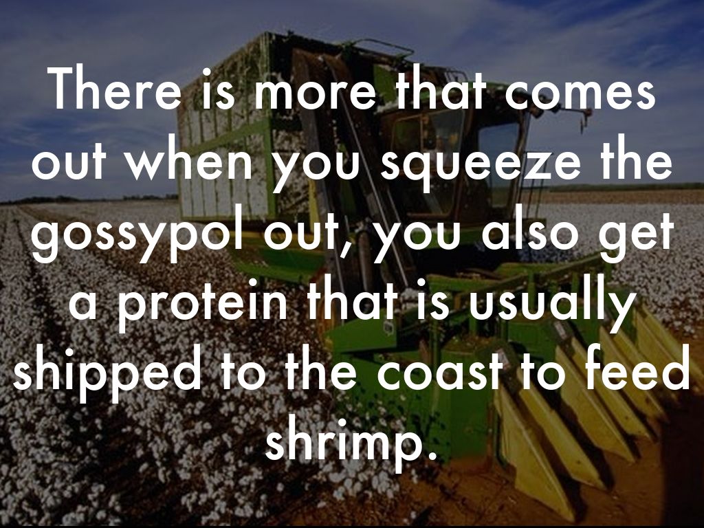There is more that comes out when you squeeze the gossypol out, you also get a protein that is usually shipped to the coast to feed shrimp.