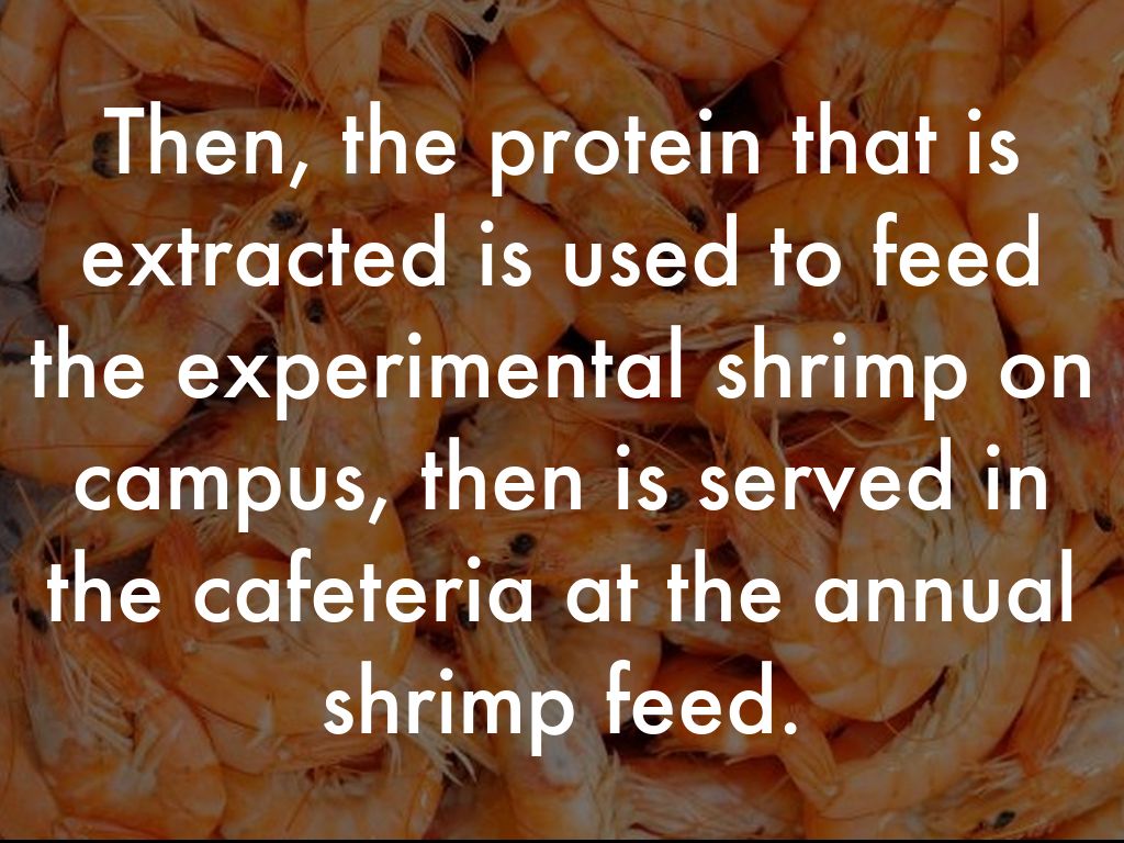 Then, the protein that is extracted is used to feed the experimental shrimp on campus, then is served in the cafeteria at the annual shrimp feed.