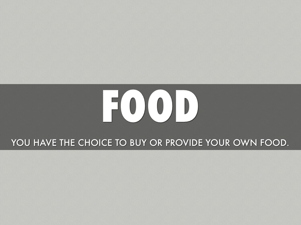YOU HAVE THE CHOICE TO BUY OR PROVIDE YOUR OWN FOOD.