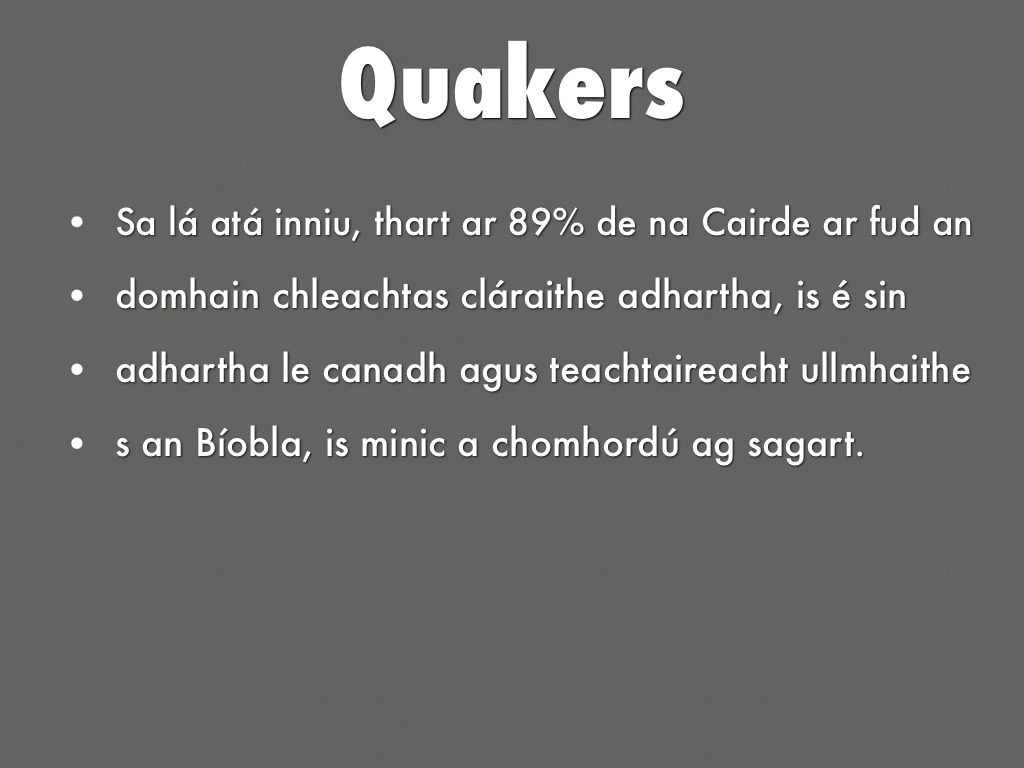 Sa lá atá inniu, thart ar 89% de na Cairde ar fud an