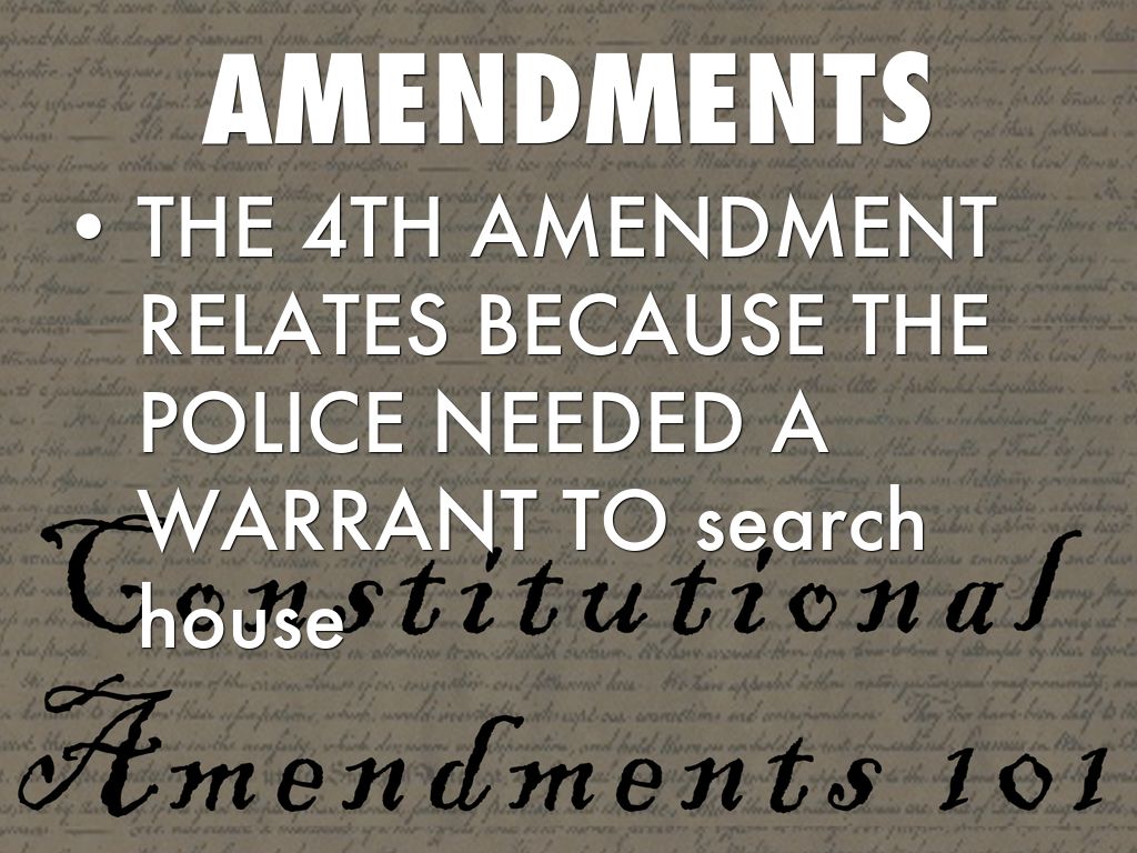 • THE 4TH AMENDMENT RELATES BECAUSE THE POLICE NEEDED A WARRANT TO search house
