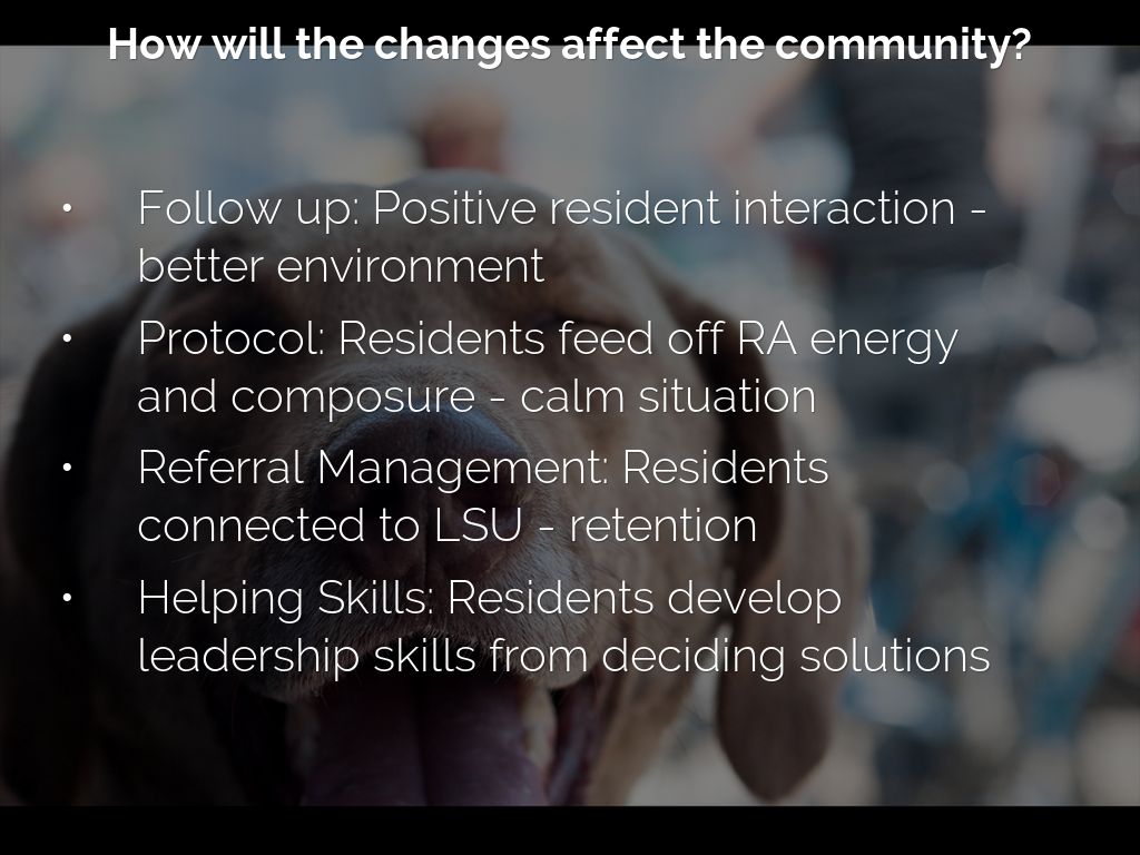 Protocol: Residents feed off RA energy and composure - calm situation