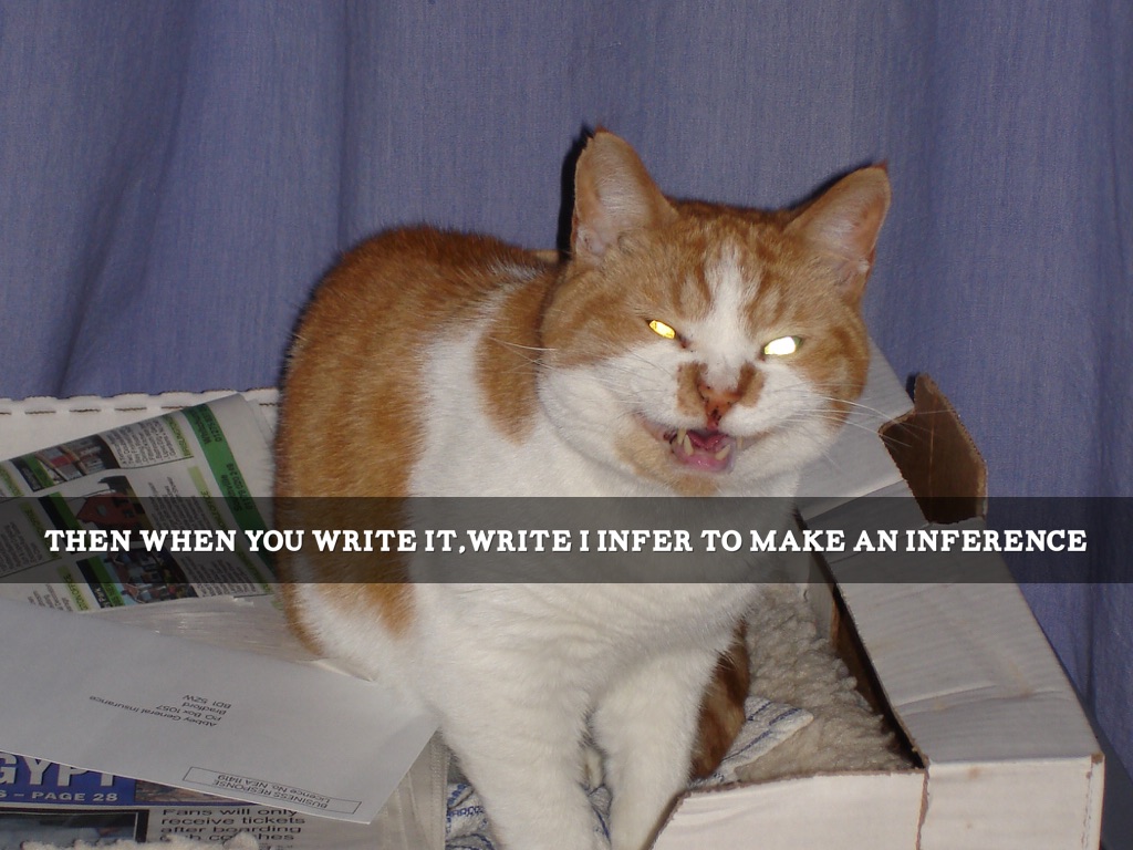 THEN WHEN YOU WRITE IT,WRITE I INFER TO MAKE AN INFERENCE