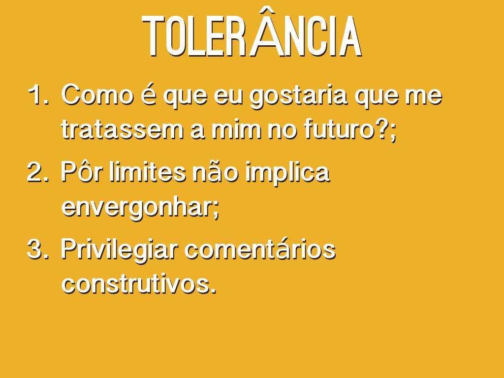 • Como é que eu gostaria que me tratassem a mim no futuro?;