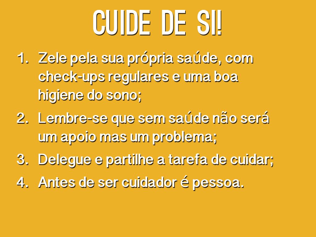 • Lembre-se que sem saúde não será um apoio mas um problema;