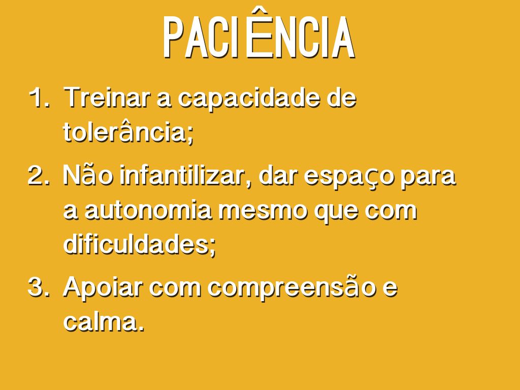 • Não infantilizar, dar espaço para a autonomia mesmo que com dificuldades;