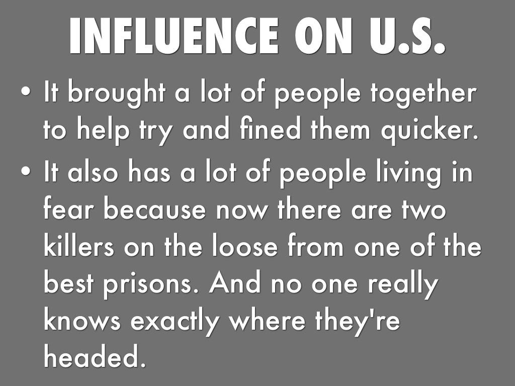 It would impact the killers both negatively and positively because they escaped and are still on the run. But when they get caught it won't be good for them.
