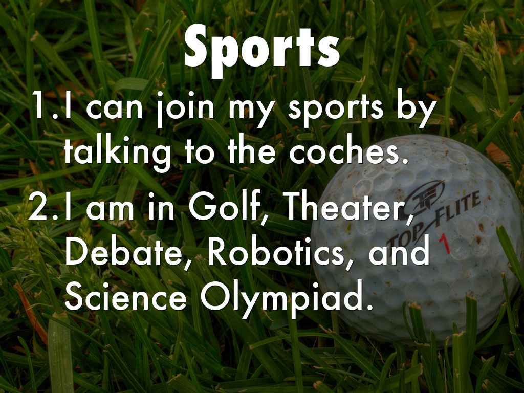 I am in Golf, Theater, Debate, Robotics, and Science Olympiad.