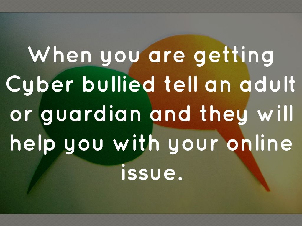 When you are getting Cyber bullied tell an adult or guardian and they will help you with your online issue.