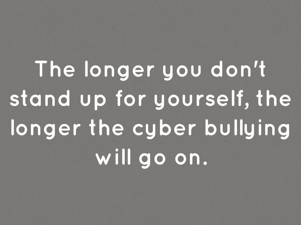 The longer you don't stand up for yourself, the longer the cyber bullying will go on.