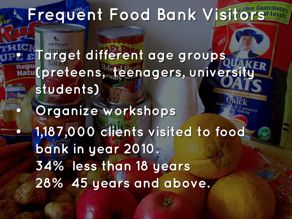 1,187,000 clients visited to food bank in year 2010. 34% less than 18 years 28% 45 years and above.