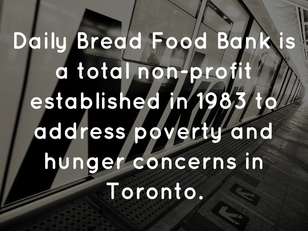 Daily Bread Food Bank is a total non-profit established in 1983 to address poverty and hunger concerns in Toronto.