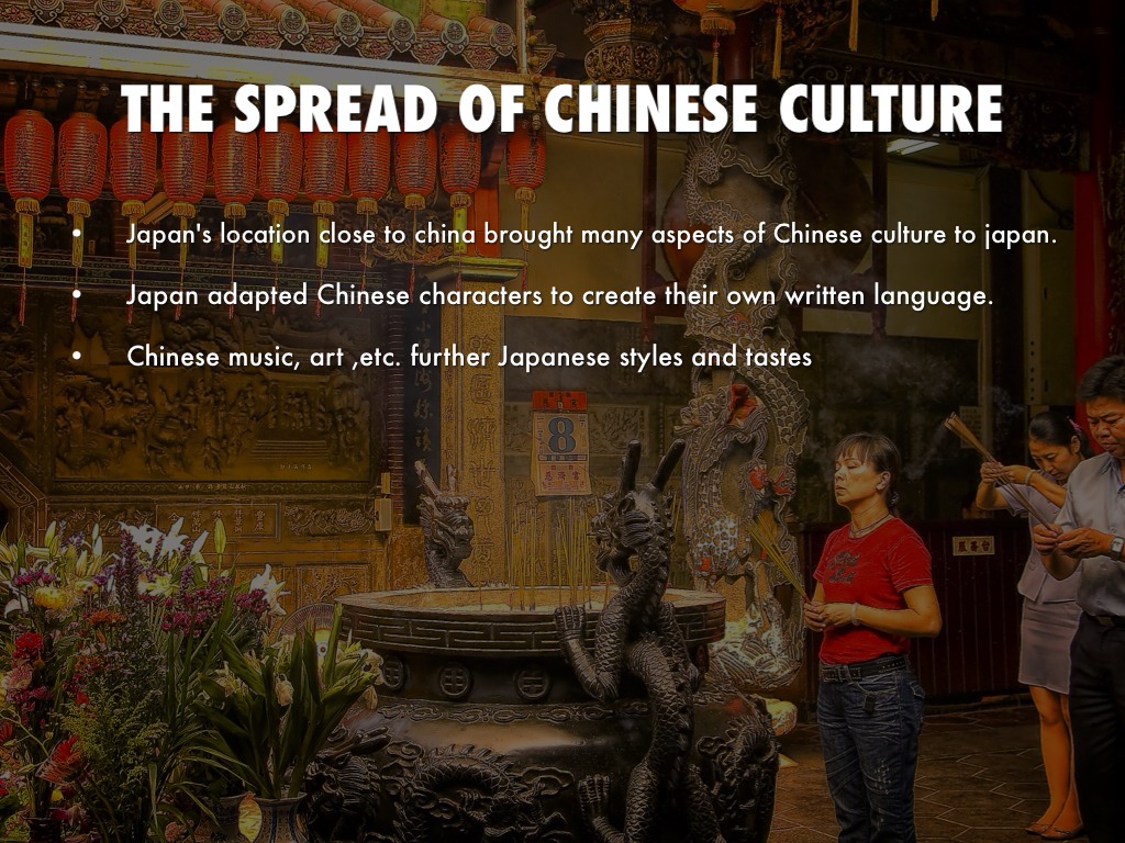 Japan's location close to china brought many aspects of Chinese culture to japan.
