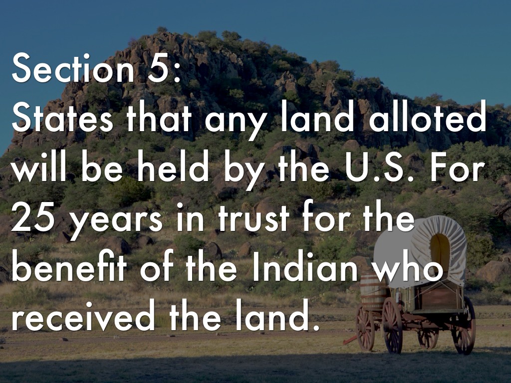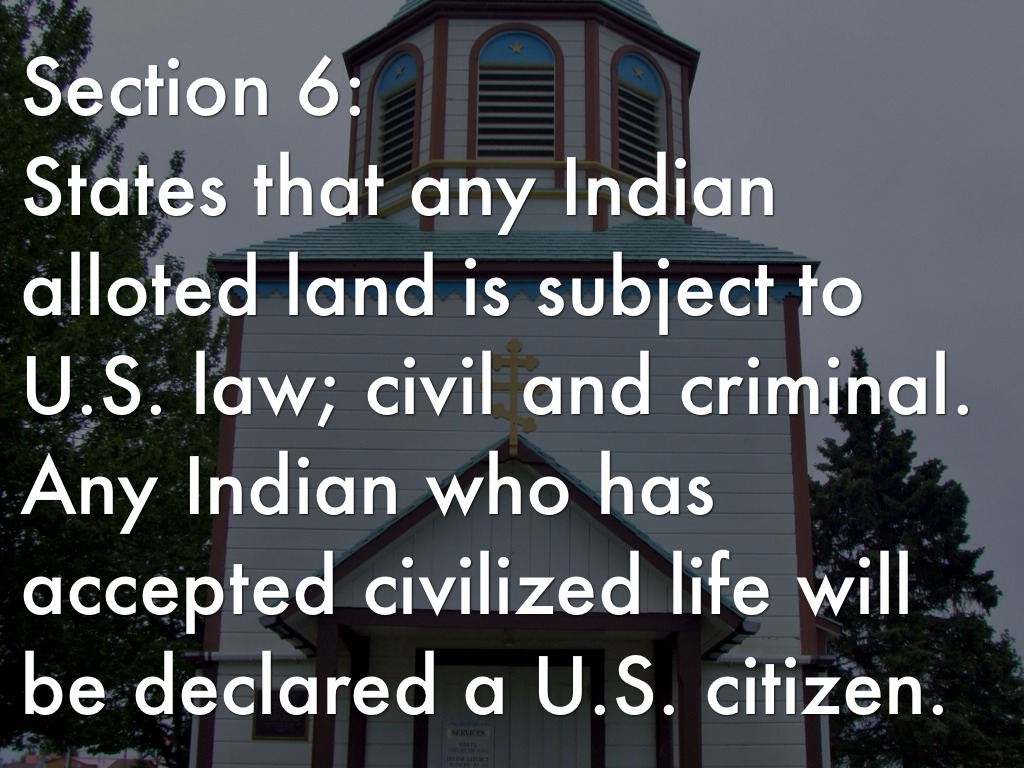 Section 6: States that any Indian alloted land is subject to U.S. law; civil and criminal. Any Indian who has accepted civilized life will be declared a U.S. citizen.