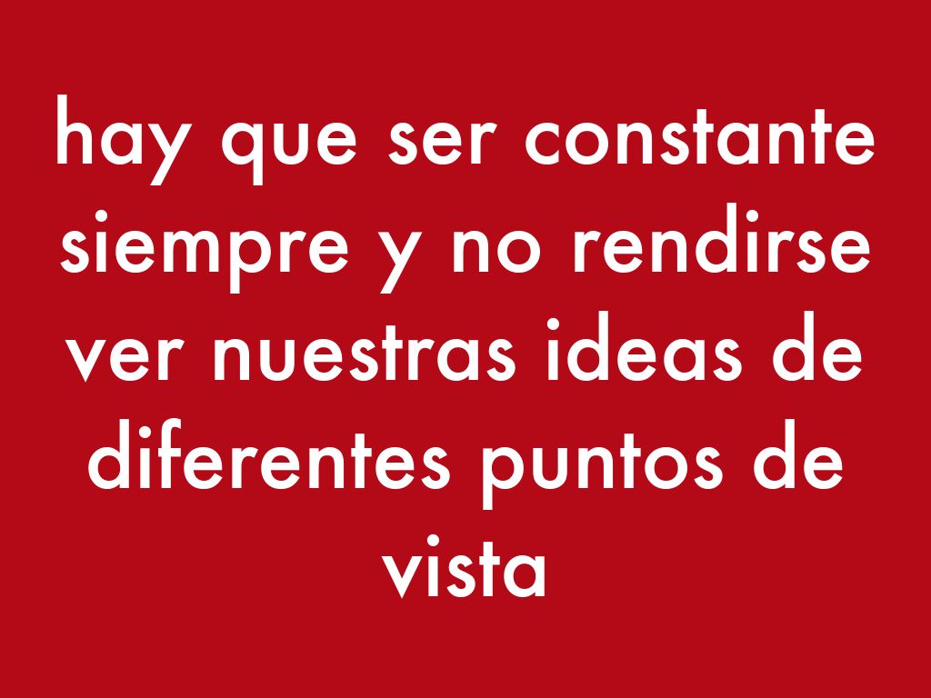 hay que ser constante siempre y no rendirse ver nuestras ideas de diferentes puntos de vista