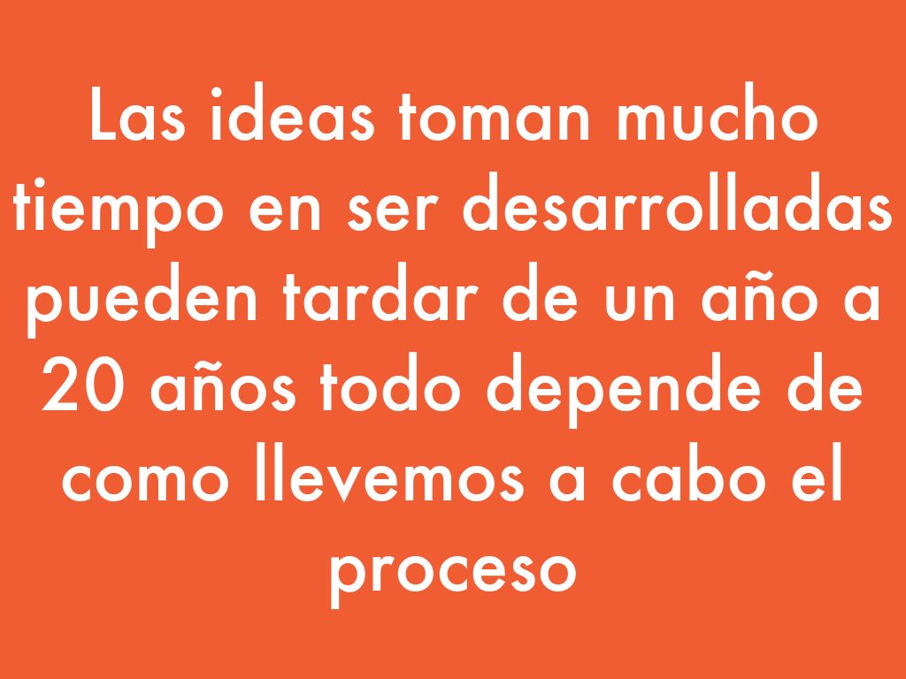 Las ideas toman mucho tiempo en ser desarrolladas pueden tardar de un año a 20 años todo depende de como llevemos a cabo el proceso