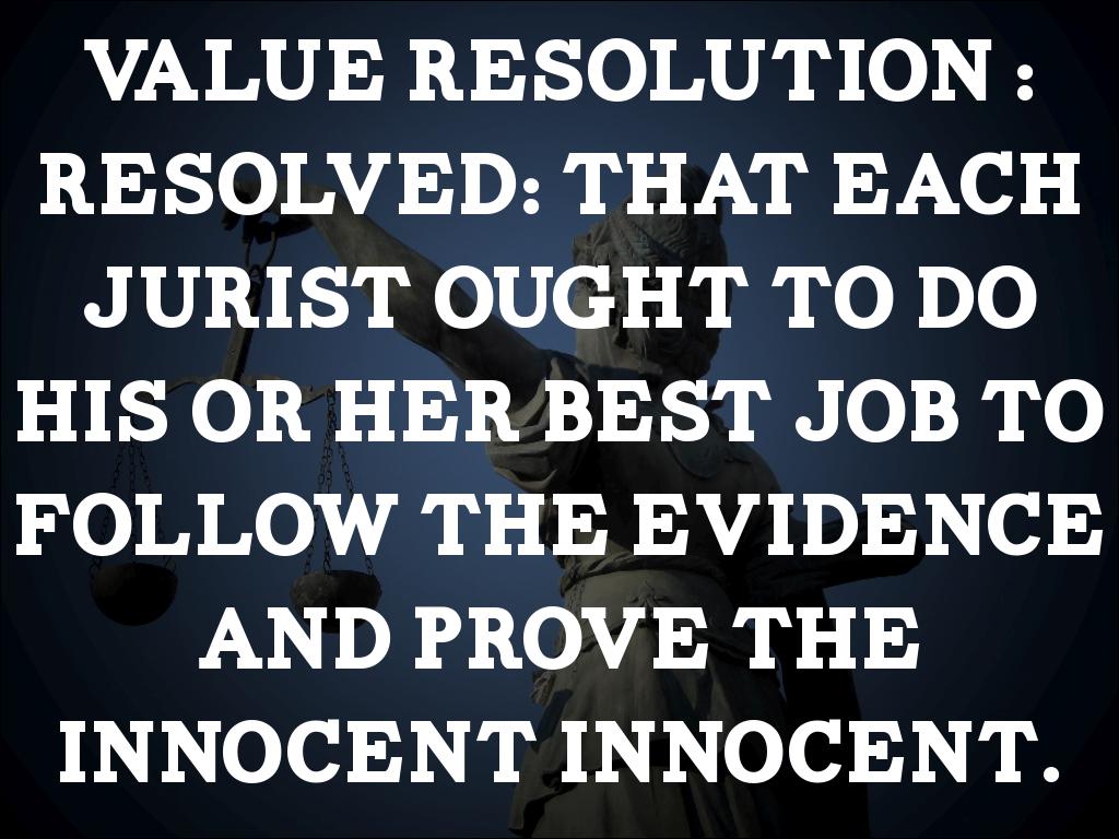 Resolved: that each jurist ought to do his or her best job to follow the evidence and prove the innocent innocent.