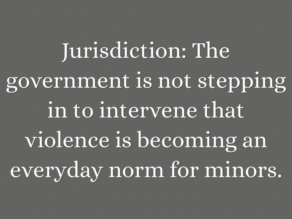 Jurisdiction: The government is not stepping in to intervene that violence is becoming an everyday norm for minors.