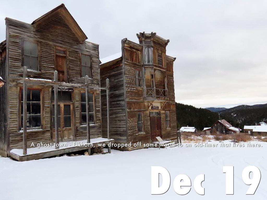 A ghost town - Elkhorn, we dropped off some wood to an old-timer that lives there.