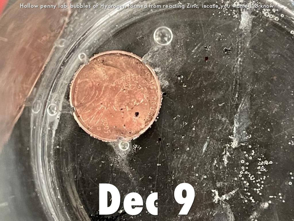 Hollow penny lab- bubbles of Hydrogen formed from reacting Zinc, incase you wanted to know