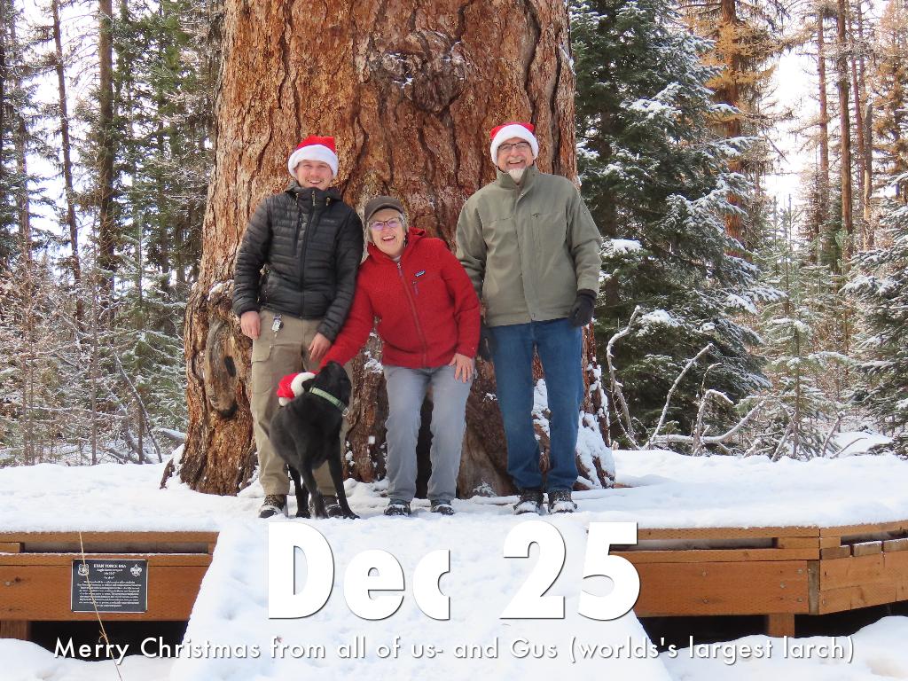 Merry Christmas from all of us- and Gus (worlds's largest larch)
