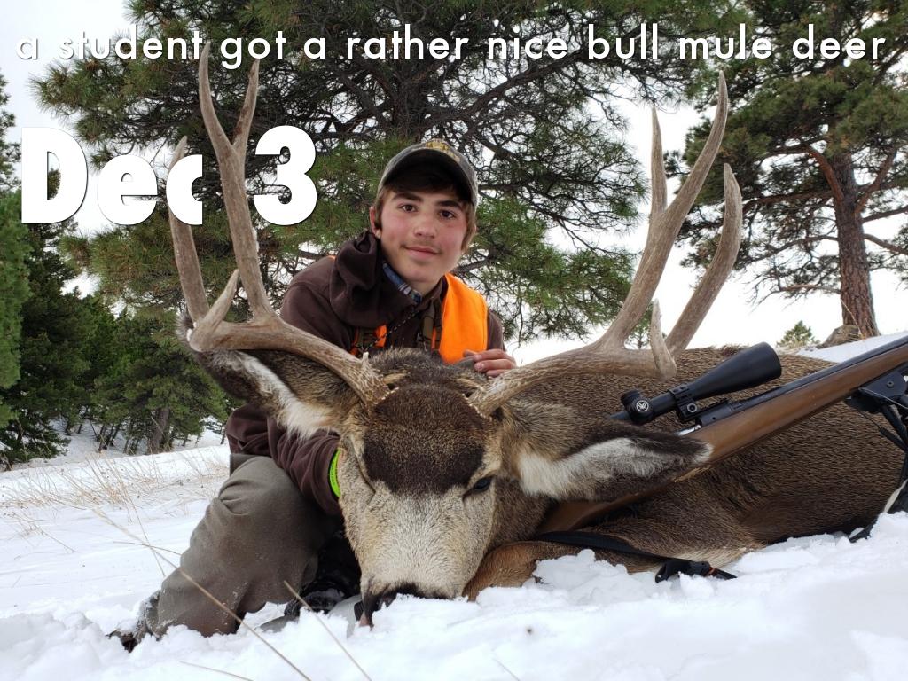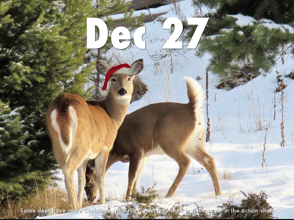 Some deer have more Christmas spirit than others- as seen in this caught in the action shot.