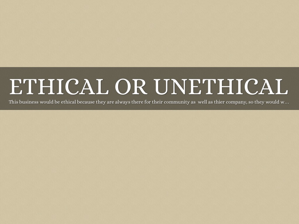 This business would be ethical because they are always there for their community as well as thier company, so they would want to keep the coustmers as happy so they can come again next time .