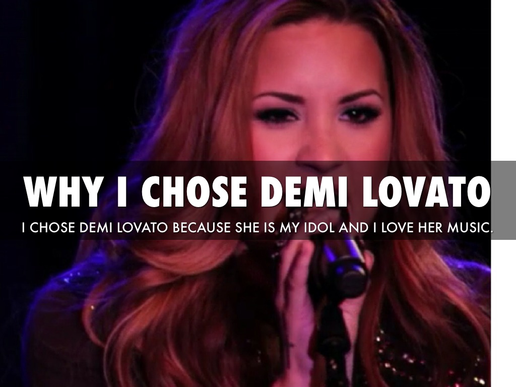 I CHOSE DEMI LOVATO BECAUSE SHE IS MY IDOL AND I LOVE HER MUSIC.