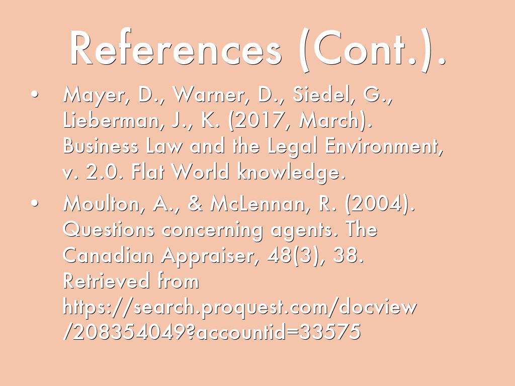 Moulton, A., & McLennan, R. (2004). Questions concerning agents. The Canadian Appraiser, 48(3), 38. Retrieved from