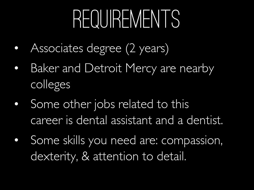 Some skills you need are: compassion, dexterity, & attention to detail.