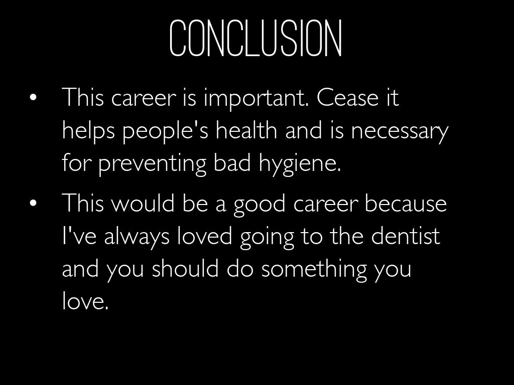 This would be a good career because I've always loved going to the dentist and you should do something you love.