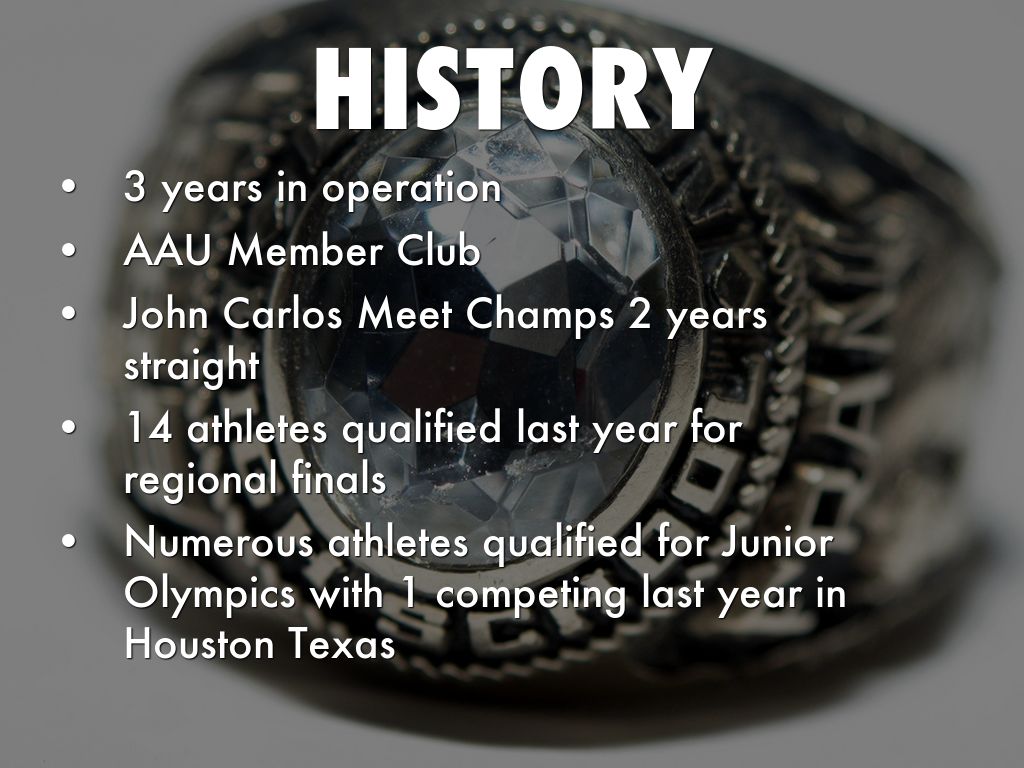 • Numerous athletes qualified for Junior Olympics with 1 competing last year in Houston Texas