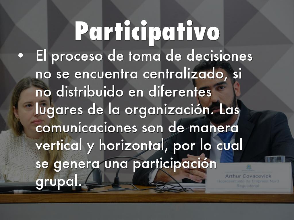 • El proceso de toma de decisiones no se encuentra centralizado, si no distribuido en diferentes lugares de la organización. Las comunicaciones son de manera vertical y horizontal, por lo cual se genera una participación grupal.