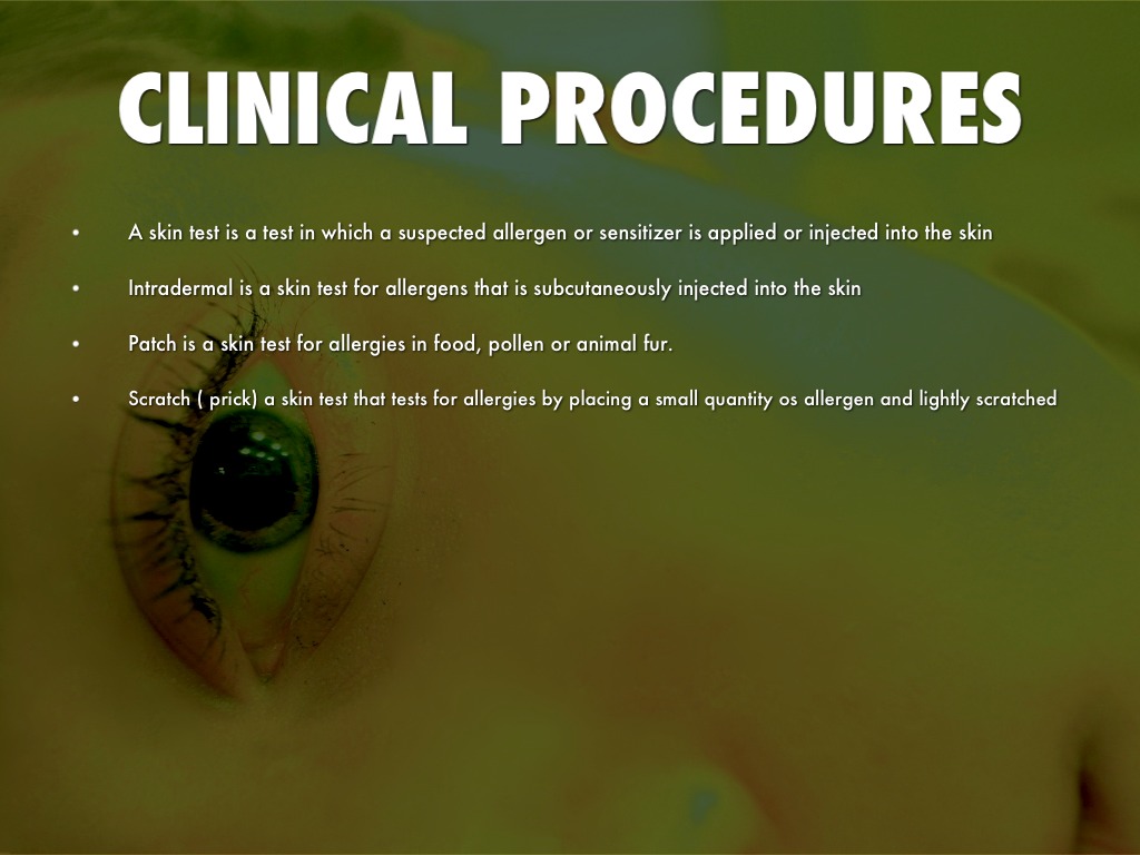 • Patch is a skin test for allergies in food, pollen or animal fur.