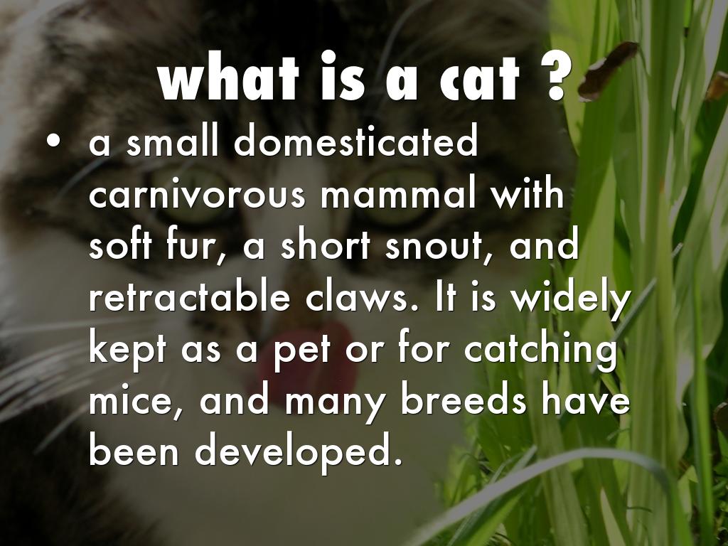• a small domesticated carnivorous mammal with soft fur, a short snout, and retractable claws. It is widely kept as a pet or for catching mice, and many breeds have been developed.