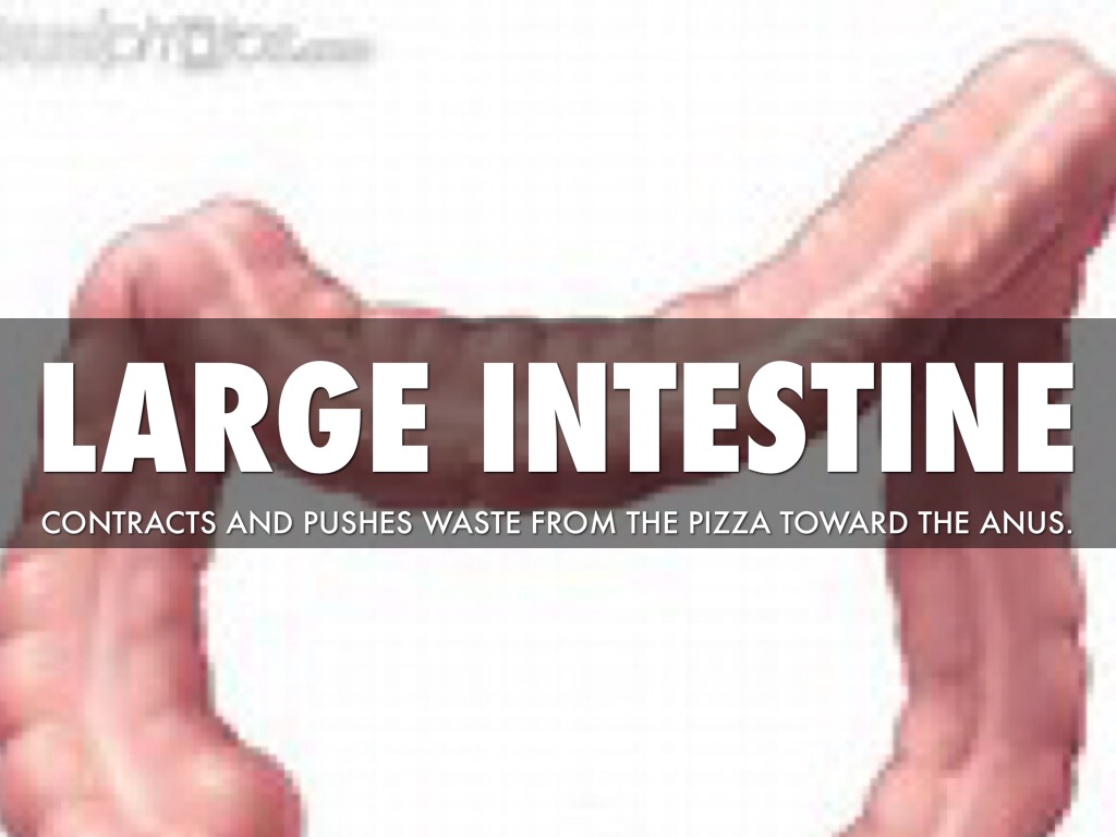 ABSORBS NUTRIENTS INTO THE BLOOD AND CHEMICALLY DIGESTS THE PIZZA.