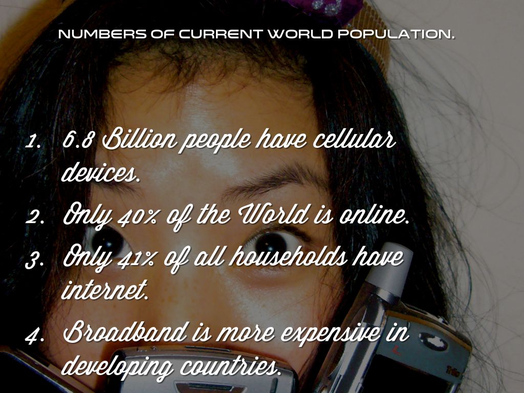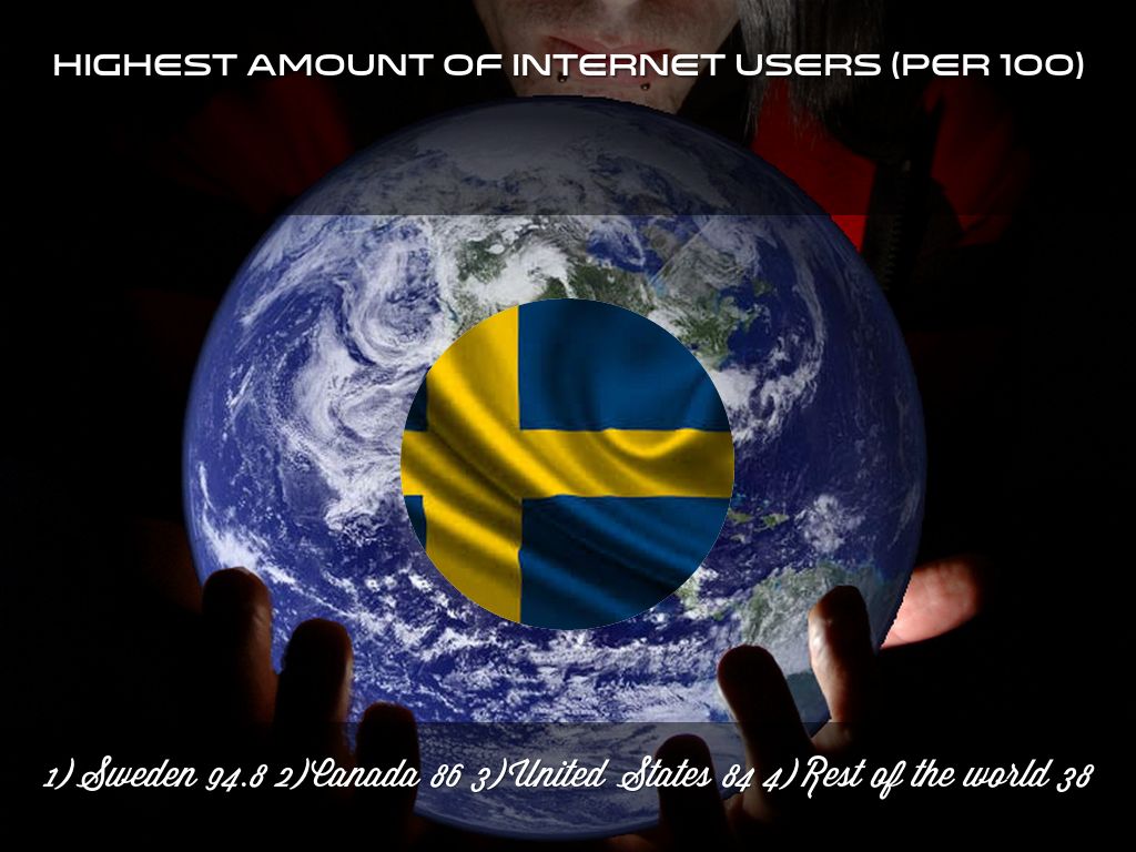 Sweden is the country with the most internet users per 100 people. As you can see with the numbers the gap is huge between the top three countries and the rest of the world. This includes Russia, China, and Germany. It is amazing to see the numbers because in todays age people would have thought that all the people in all countries would be high but instead it is very low.