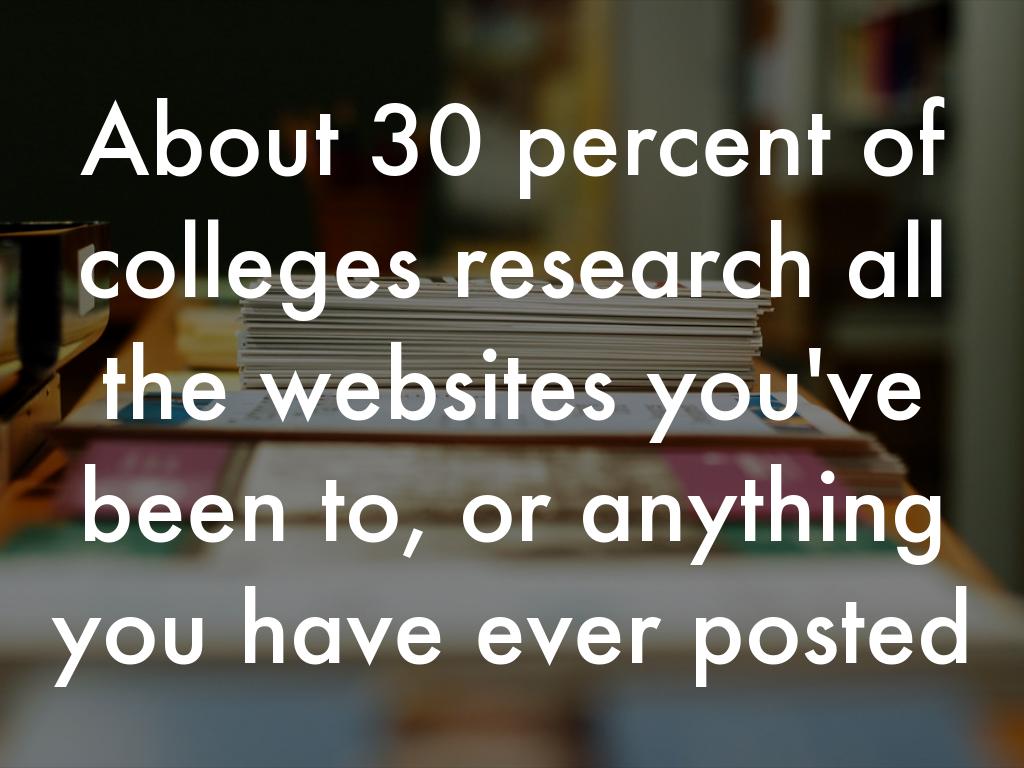 About 30 percent of colleges research all the websites you've been to, or anything you have ever posted