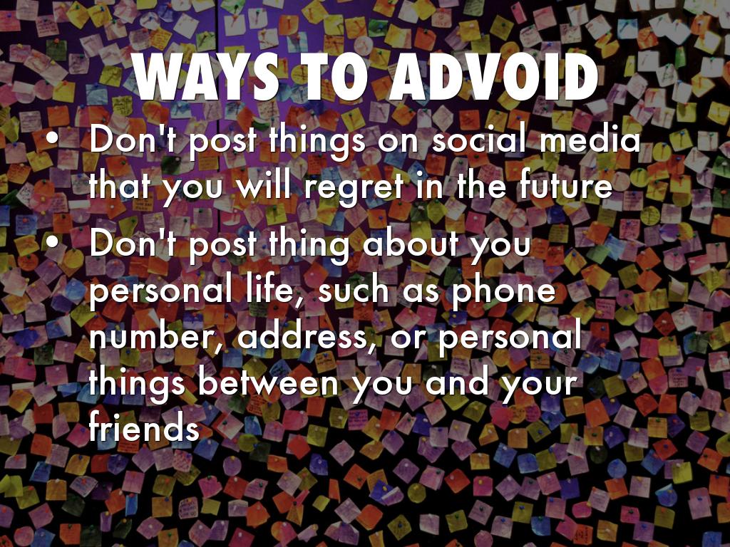• Don't post thing about you personal life, such as phone number, address, or personal things between you and your friends