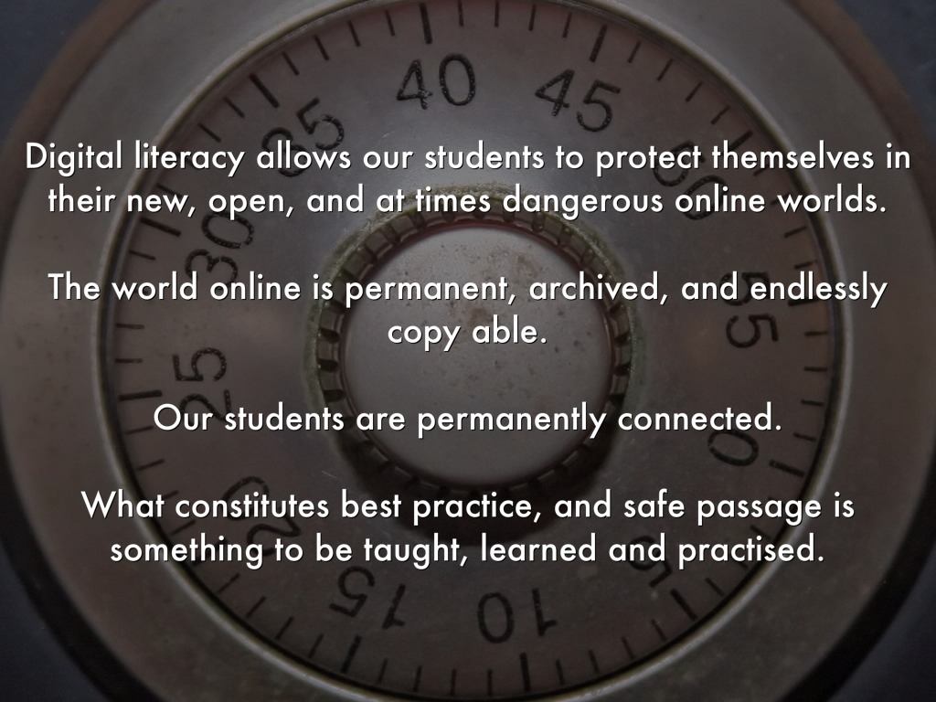 Digital literacy allows our students to protect themselves in their new, open, and at times dangerous online worlds.