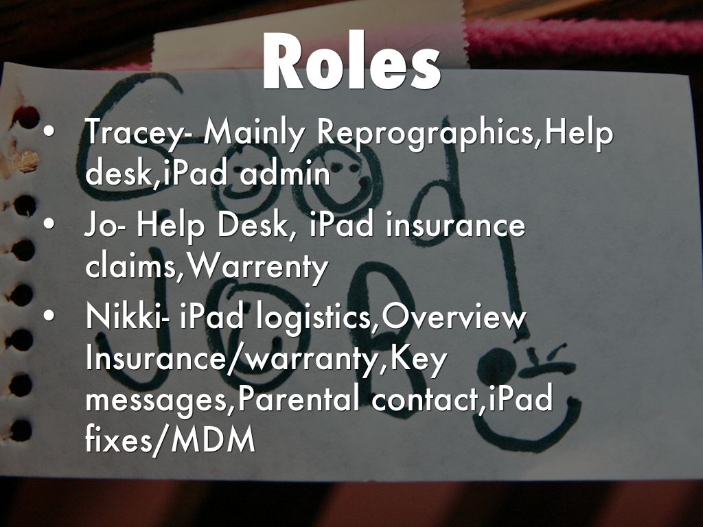Nikki- iPad logistics,Overview Insurance/warranty,Key messages,Parental contact,iPad fixes/MDM