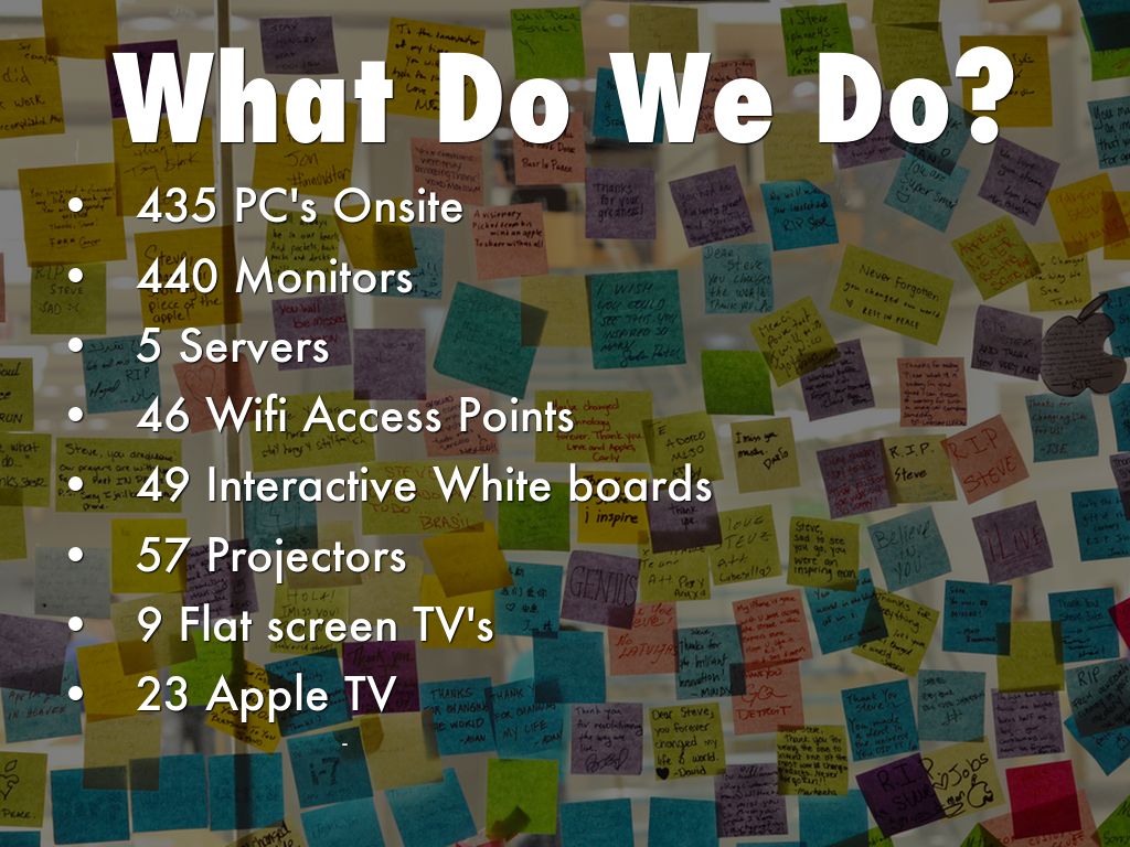Tracey- Mainly Reprographics,Help desk,iPad admin