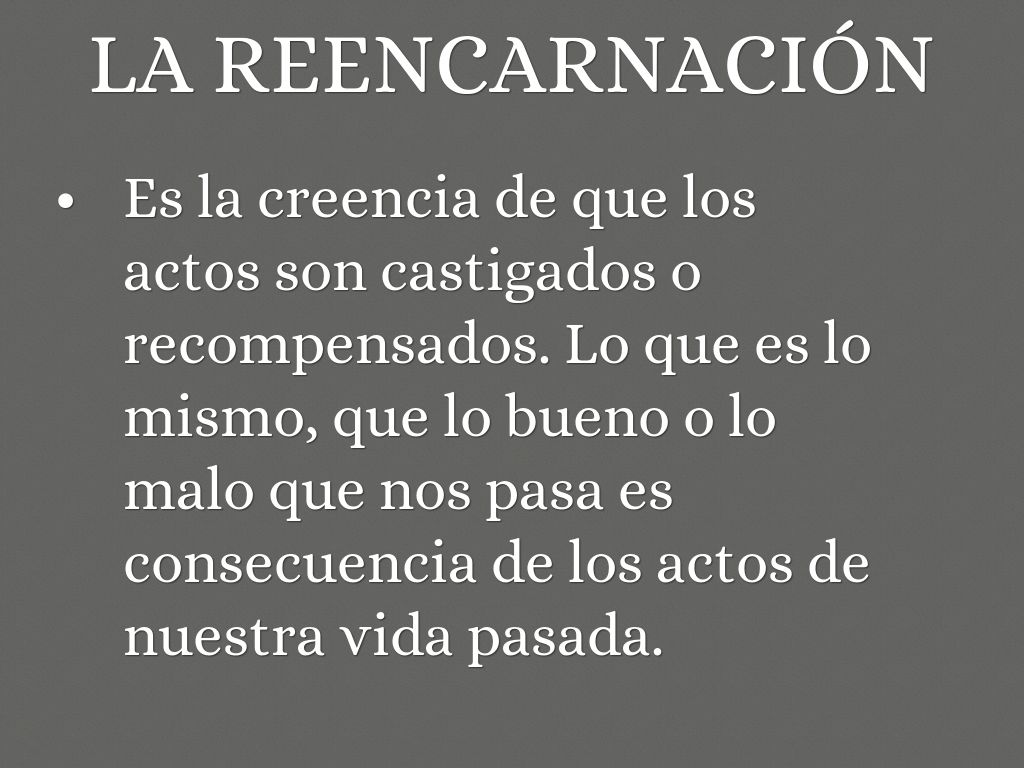 Es la creencia de que los actos son castigados o recompensados. Lo que es lo mismo, que lo bueno o lo malo que nos pasa es consecuencia de los actos de nuestra vida pasada.