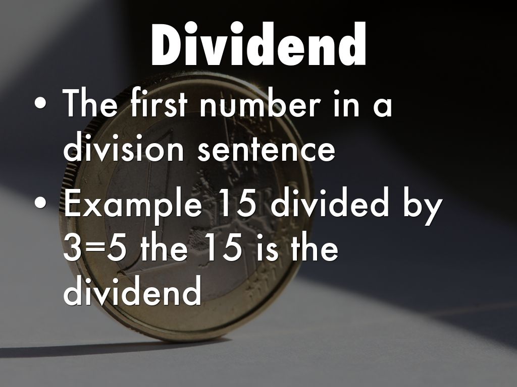 Example 15 divided by 3=5 the 15 is the dividend