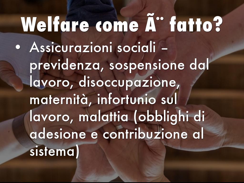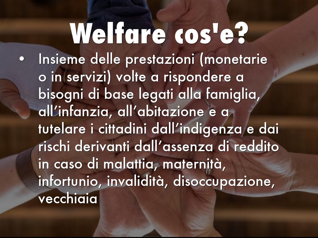 Insieme delle prestazioni (monetarie o in servizi) volte a rispondere a bisogni di base legati alla famiglia, all’infanzia, all’abitazione e a tutelare i cittadini dall’indigenza e dai rischi derivanti dall’assenza di reddito in caso di malattia, maternità, infortunio, invalidità, disoccupazione, vecchiaia