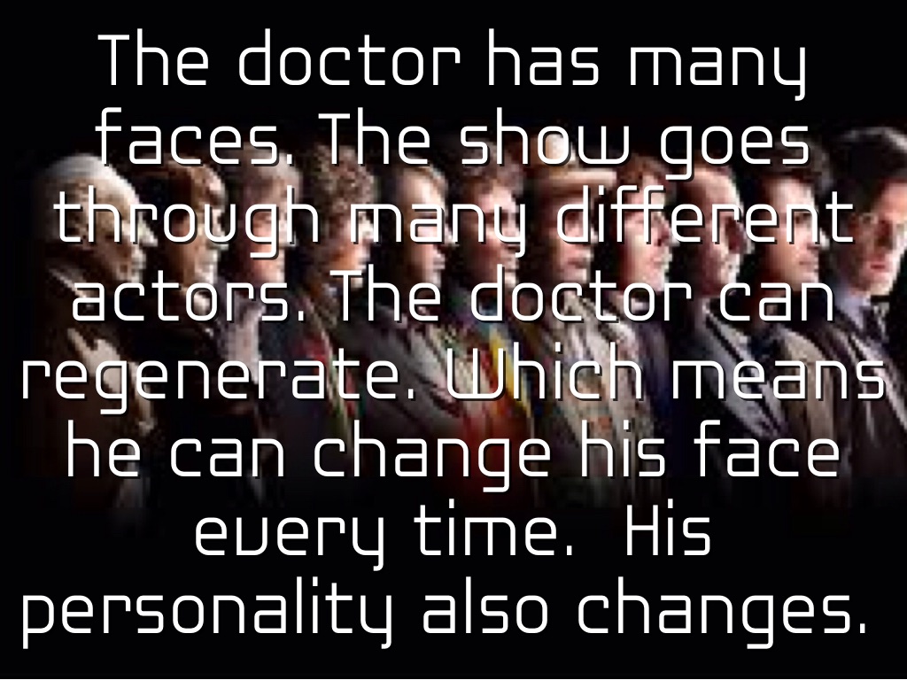 The doctor has many faces. The show goes through many different actors. The doctor can regenerate. Which means he can change his face every time. His personality also changes.