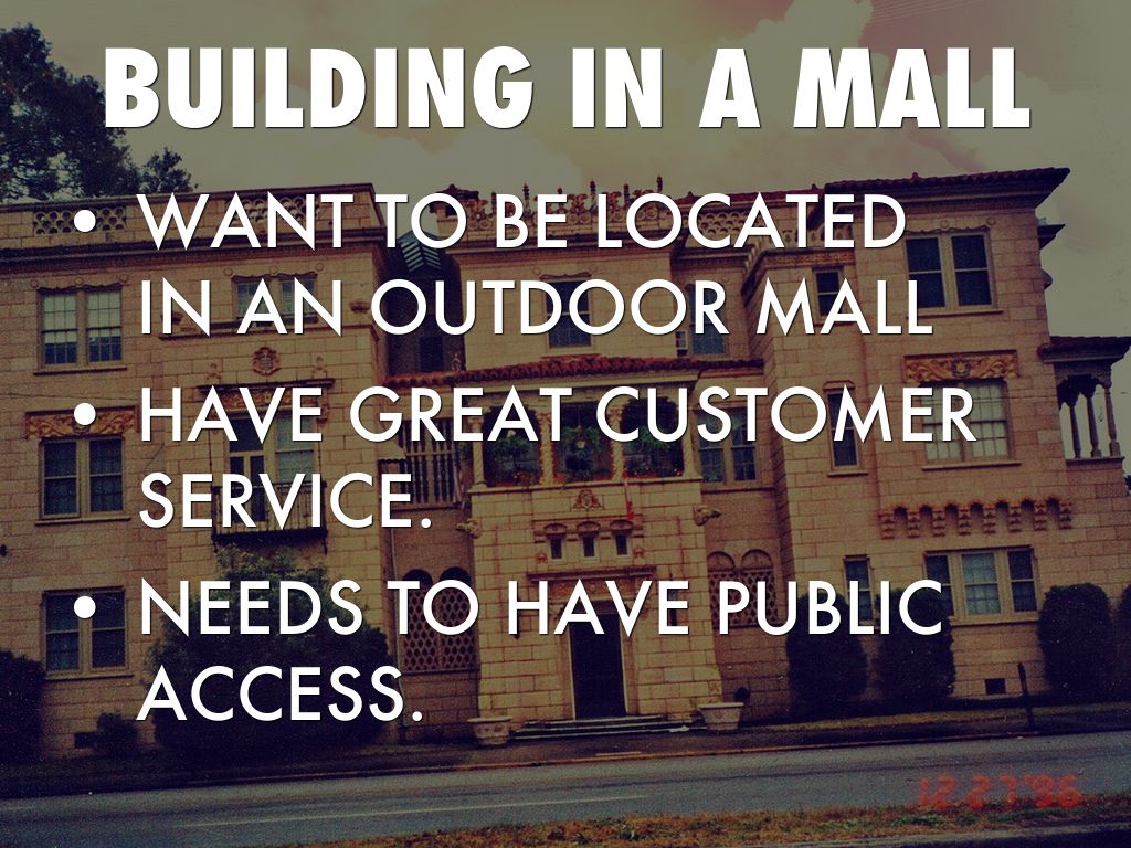 • WANT TO BE LOCATED IN AN OUTDOOR MALL